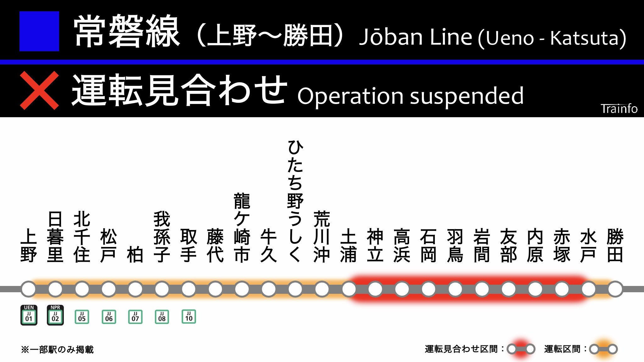 【常磐線(土浦〜水戸) 上下線 運転見合わせ】