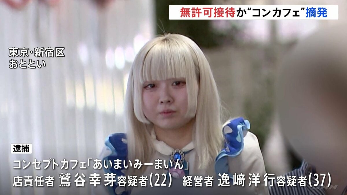 新宿区のコンセプトカフェ「あいまいみーまいん」の店の責任者・鷲谷幸芽容疑者(22)と、経営者の逸崎洋行容疑者(37)