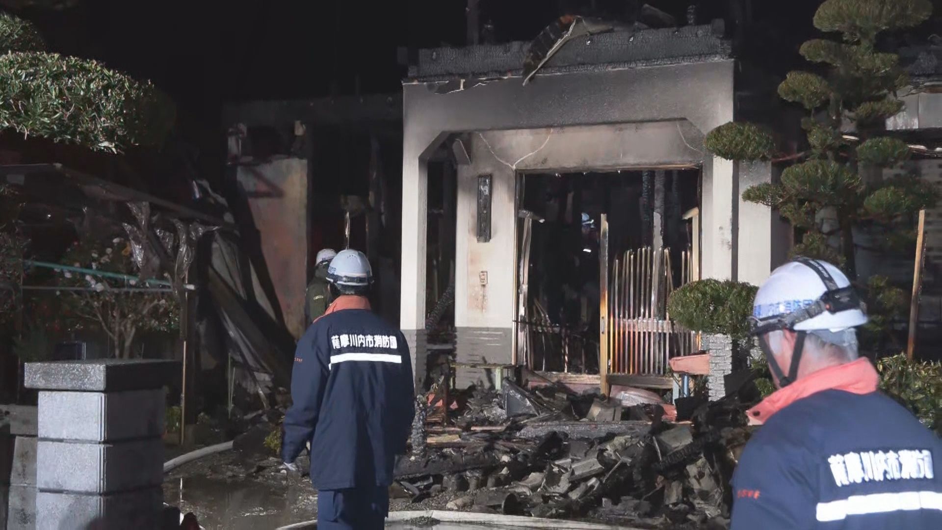 薩摩川内市で住宅1棟を全焼する火事があり、焼け跡から1人の遺体が見つかりました。この家に住む92歳の女性と連絡がとれなくなっています。
