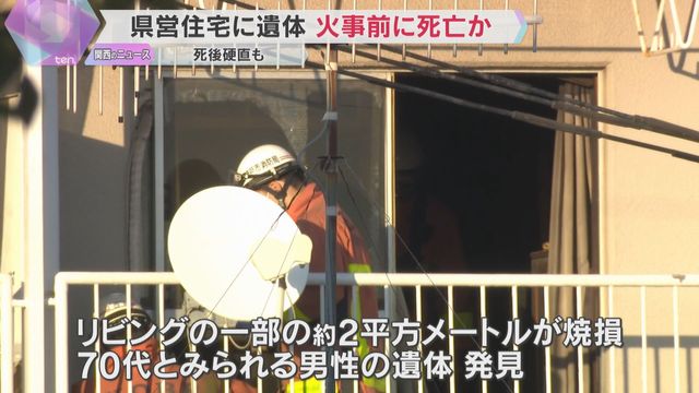 12日正午すぎ、神戸市の県営住宅の一室で火事がありました。室内では、火事の前に死亡したとみられる男性の遺体が見つかり、警察が詳しい状況を捜査しています。