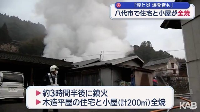 「煙と炎 爆発音も」住宅など全焼(熊本ニュース KAB ONLINE) - Yahoo!ニュース