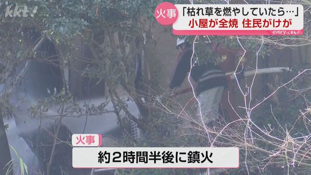 5日午後、熊本市北区植木町で住宅などが燃える火事がありました。住民の男性が転倒しドクターヘリで搬送されましたが、命に別条はありませんでした。